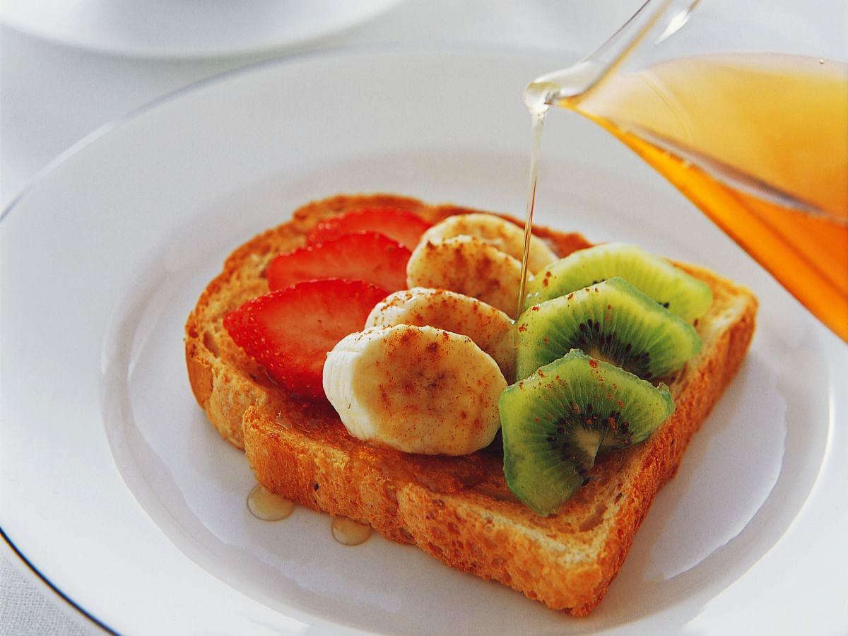 - Toast bread until crispy and spread with maple spread while still hot. Attractively arrange fruit on top.