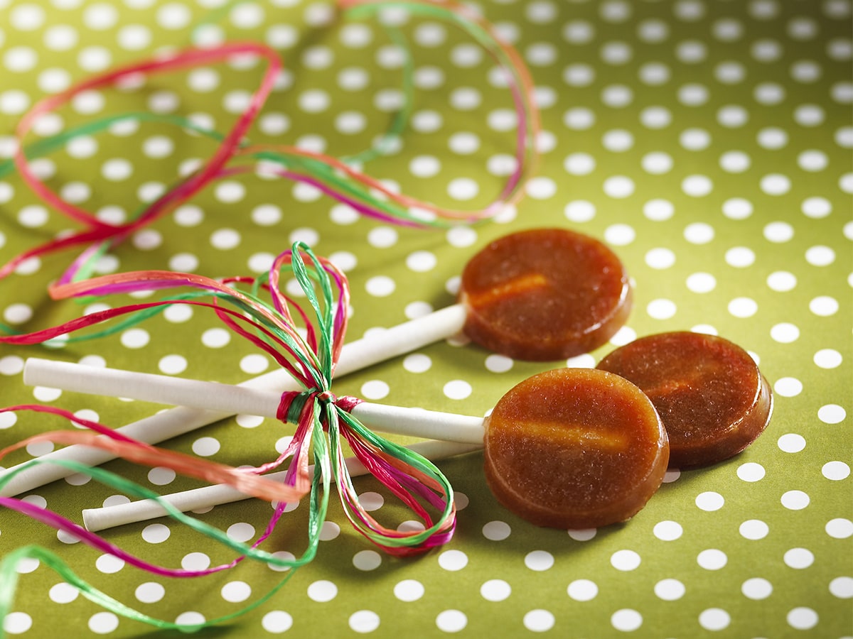 - Quickly place a lollipop stick in the centre of each circle, then leave to harden.