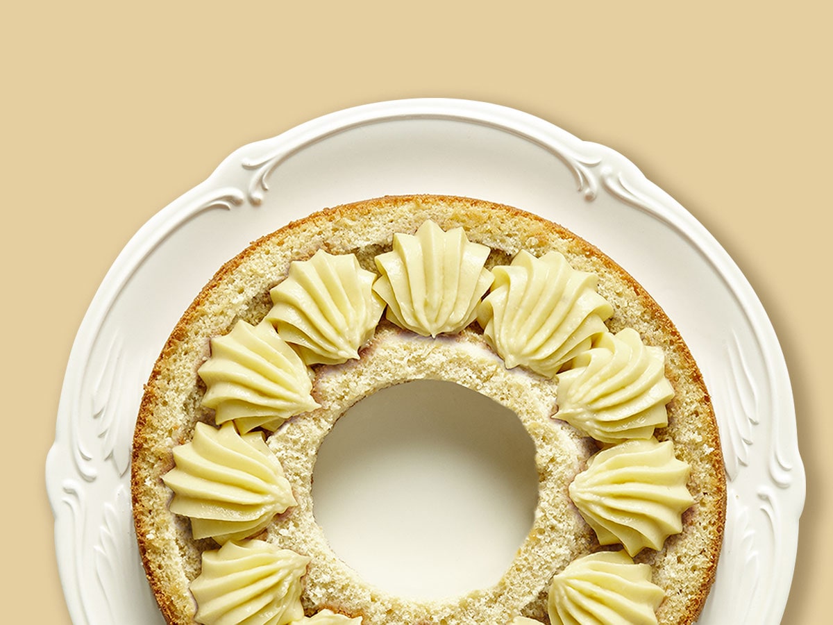- Pour into a pastry bag with a #5 plain tip and fill cake.