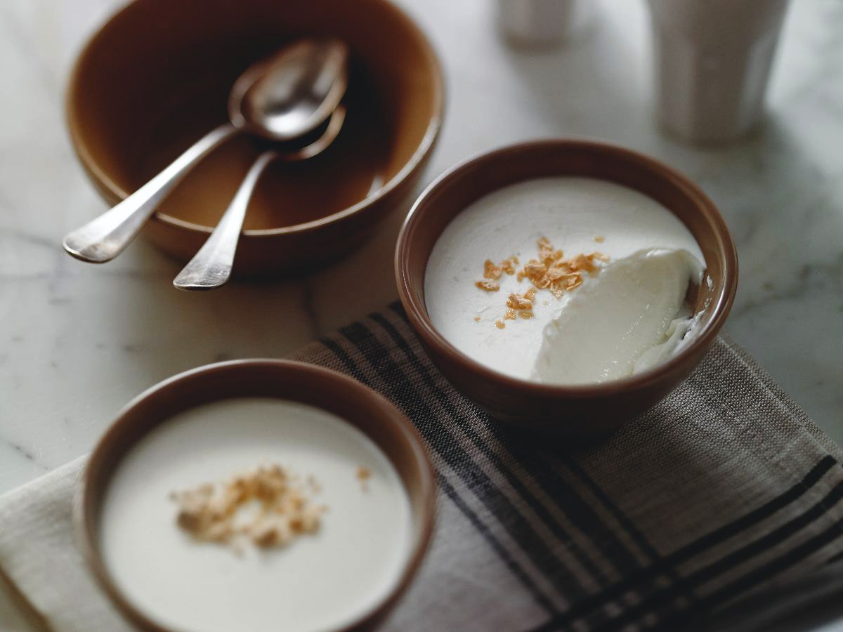 - Add the gelatin to the reduced maple water and whisk until completely dissolved. Add the cream and mix well. Strain and divide among 4 or 6 small glasses or glass cups that can hold about 125 ml (1/2 cup). Refrigerate for 6 hours or overnight.