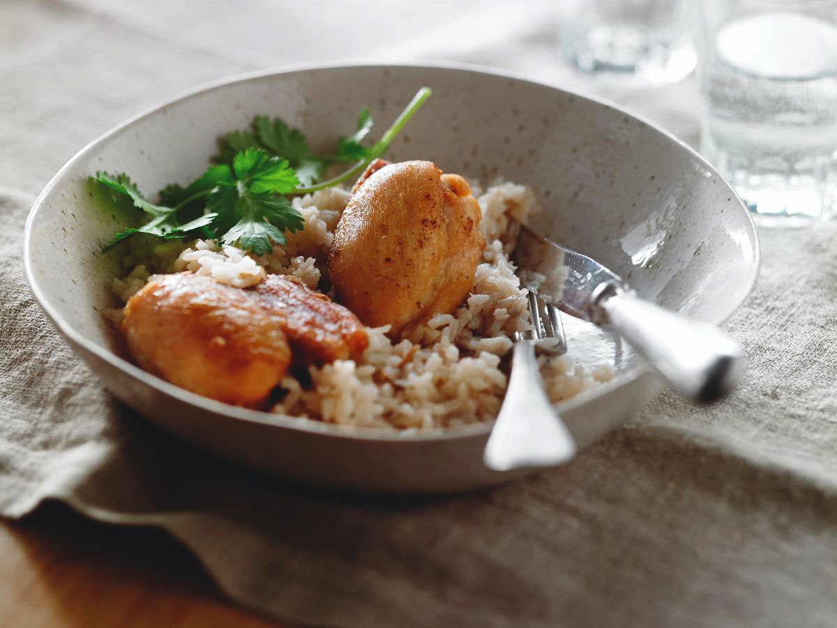 - Cook 1 minute, stirring to coat the rice. Return chicken to the pan and add maple water. Bring to a boil. Cover and simmer over low heat for about 25 minutes. Turn off the heat and let stand 15-20 minutes.